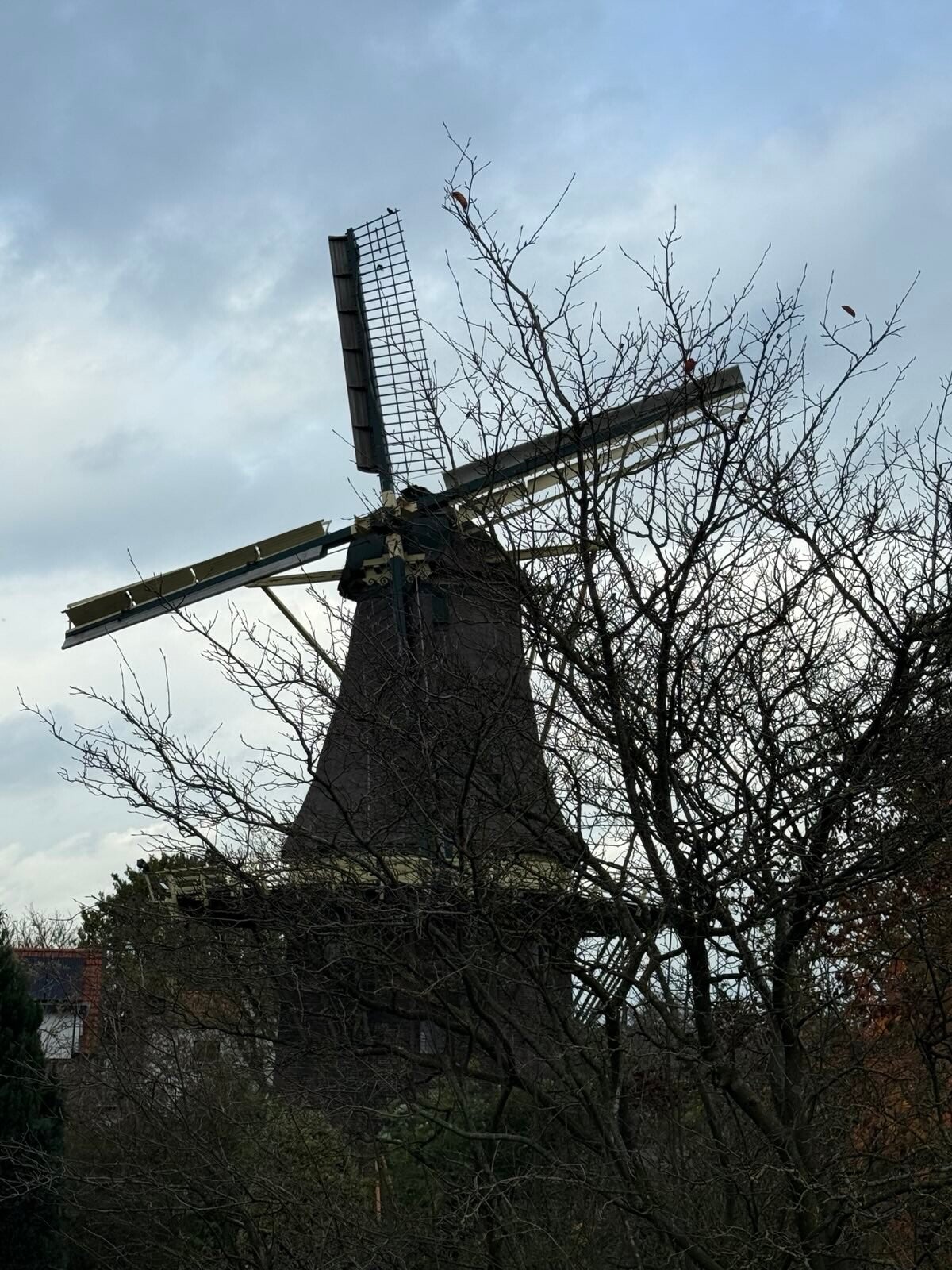 Even later sloften Mads en ik naar de molen om de molenaar op de hoogte te brengen van Ries overlijden. Nu staat de molen traditiegetrouw in rouwstand. Buurvrouw Rie, we zullen haar missen.