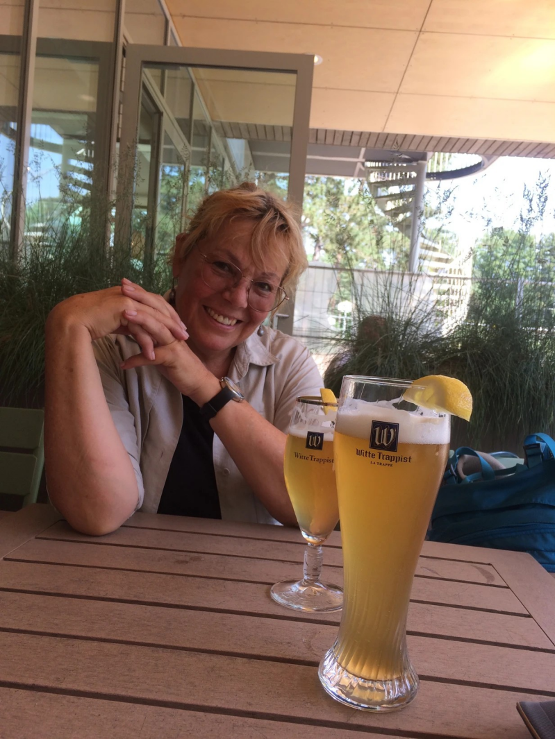 En dan is onverwachts snel het eindpunt van het Floris V-pad daar. Altijd een moeilijk moment. Onderweg zijn, dat is het spel, finishen niet. Een La Trappe witbier op het terras van de jeugdherberg bij de finish maakt het deels goed.