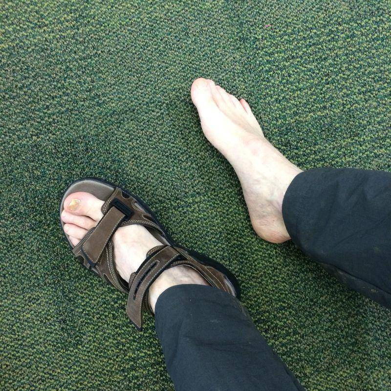 Blijkt dat z’n veelvuldige aanwezigheid op de terreinen nog een andere reden heeft. Nalbert zoekt een sandaal. Hij kwam erachter toen hij een selfie van z’n voeten nam, zittend voor z’n tentje. Hij had het totaal niet door, totdat hij de foto zag: ‘fuck, ik mis een sandaal!’